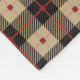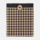 The background on this lumberjack style fleece blanket is a red , tan, and black variation on the popular buffalo plaid pattern. At the top center is a tan circle banner with a matching red moose image, placed on a black top border. Perfect for that cabin or home near the woodlands. Be sure to see the matching home decor products in our store.