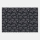Christmas holiday 3-sheet coordinating wrapping paper set. Sheet 1 has "Happy Christmas" tiled across a dark red background. Sheet 2 has "Happy Christmas" tiled across a black background. Sheet 3 has white snowflakes on a red and black checkered buffalo plaid.