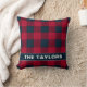 Rustic Red & Black Plaid Family Name Throw Pillow