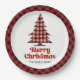 Rustic Red Black Plaid Tree Christmas Paper Plates