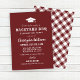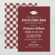 Set the tone for a classic cookout with this red brown graduation party invitation featuring a graduation cap icon and bold “Backyard BBQ” rustic typography. Ideal for a summer open house, backyard celebration, or casual BBQ gathering. Personalize the name, date, time, address, and RSVP. Back shows a coordinating gingham pattern.