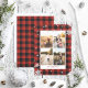 Rustic Red Buffalo Check Snowflake 4 Photo Holiday Card