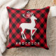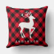 A rustic red and black buffalo plaid throw pillow featuring a white deer silhouette and family name monogram. The bold check pattern and elegant stag create a cozy, lodge-inspired Christmas accent. Personalize with your family name for a one-of-a-kind holiday keepsake. A warm, inviting addition to sofas, cabins, and fireside seating.