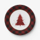 Rustic Red Christmas Tree Modern Buffalo Plaid Paper Plates