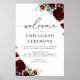 Rustic Red Floral Wedding Unplugged Ceremony Poster