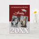 Rustic Red Graduate 2 Photo Congratulations Graduation Card. Graduation cap and text on the front. Rustic grey and dark red background. Add 2 photos on the front - you can add before and after photos. Add your message inside or erase it.