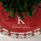 Rustic Red Green Argyle Christmas Monogram Brushed Polyester Tree Skirt