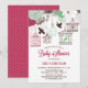 Rustic Red & Green Bird Cages Floral Baby Shower Invitation