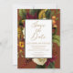 Ethereal floral bouquets with shades of dark red, rusty orange, yellow to harvest gold and lush greenery give this dark botanical wedding "Save the Date" design a look of deep, rich modern rustic elegance that is sure to impress your recipients. Available in a variety of color combinations. Simply add your names, date, location and website or other details. Shown here on a rusty orange / terracotta background with a dark teal back background. Composite design by Holiday Hearts Designs (rights reserved).