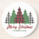 Rustic Red Plaid Merry Christmas Trees Custom Coaster