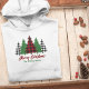 This custom rustic holiday hoodie features trendy red plaid and green Christmas trees above your message Merry Christmas. A cute personalized and traditional look that is currently in style again, this festive hooded sweatshirt is perfect for a family reunion. Classic and nostalgic design.