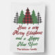 This rustic custom holiday house flag features trendy red plaid and green Christmas trees above your message Merry Christmas and Happy New Year. A cute personalized and classic look that is currently in style again, this festive outdoor decor is a beautiful choice for a Southern home in the country.