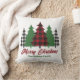 Rustic Red Plaid Merry Christmas Trees Custom Throw Pillow
