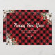 Rustic Red Plaid Snowflake Botanical New Year Card