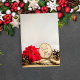 Send a warm message of thanks and appreciation for gifts received after a casual yet classy December engagement party, bridal shower or marriage with the natural Rustic Red Poinsettia Woodland Winter Wedding Flat Thank You Notes. These charming custom woods or forest theme wedding thank you notes features a quaint floral photograph of a red Christmas poinsettia flower blossom, two brown pine cone, white bridal veil and natural wood slices with the words THANK YOU burned on it with a burlap and white satin background.