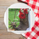 Personalize the charming Rustic Red Roses and Cowboy Boots Country Western Bridal Shower Paper Napkins with the name of the bride to be. These casual yet classy custom western ranch style theme or barn party wedding shower disposable napkins feature a quaint floral photograph of a pair of brown leather cowboy boots filled with red rose flower blossoms and a white bridal veil with a rusty wagon wheel and green natural background.
