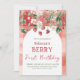 Rustic Red Strawberry Berry First Birthday Invitation
