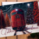Rustic Red Watercolor Christmas Trolley Photo Card
