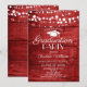 Celebrate your graduate in style with this bold and rustic graduation party invitation. A rich red wood plank background glows beneath cascading white string lights, creating a warm and festive atmosphere perfect for any graduation celebration.