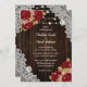 Rustic Red Wood Lace String Lights Wedding Invitation