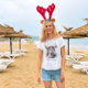 Add personalized text like Holiday Vibes Only, Reindeer Mama, or Cozy and Bright to make it uniquely hers. Great for Christmas shopping trips, festive brunches, or relaxed nights watching holiday movies, this tee is made for merry moments.