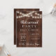 Rustic retirement party invitation featuring string lights and a combination of script and open face typography on a barn wood background. Perfect for men's or women's retirement celebration. For further customization, please click the "Customize it" button and use our simple design tool to modify this template.