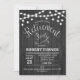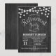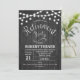Rustic Retirement Invitation with dark gray wood pattern and fairy string lights. Perfect for a rustic style party.