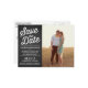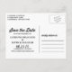 Photo save the date announcement featuring retro typography on a chalkboard background.