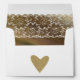Return envelope for an RSVP, with a jute heart on the back, and white lace and woody colors on the inside. This is a redone version of an old design, with the address better displayed.