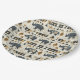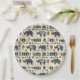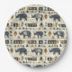 Bold tribal rhino pattern paper plate featuring distressed black rhinoceros silhouettes paired with geometric mudcloth-style motifs in warm tan and charcoal on a textured beige background. A rugged, earthy design ideal for safari enthusiasts, boho decor lovers, and wildlife-inspired style fans.