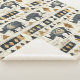Bold tribal rhino pattern blanket featuring distressed black rhinoceros silhouettes paired with geometric mudcloth-style motifs in warm tan and charcoal on a textured beige background. A rugged, earthy design ideal for safari enthusiasts, boho decor lovers, and wildlife-inspired style fans.