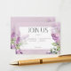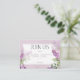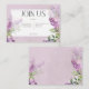Elevate your wedding announcement with our exquisite lilac whispers wedding reception card design. A canvas of subtle, distressed soft purple sets the stage for romance, while the white text box, adorned with a thin, soft purple frame, adds an element of refined simplicity. The enchantment continues with delicate sprays of watercolor lilacs and soft sage green foliage that gracefully frame the edges and back of the design, adding a touch of natural beauty to your celebration. This design is the perfect blend of timeless elegance and contemporary style. Make your wedding truly unforgettable with this captivating design that captures the essence of love and sophistication. This card is part of the Rustic Romantic Purple & Sage Lilacs Wedding Suite created by Simply Farmhouse Press.
