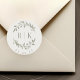 Rustic Sage Botanical Wreath Wedding Monogram Classic Round Sticker