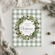 Custom-designed family recipe notebook for the holiday season featuring rustic farmhouse style Christmas cotton wreath design on sage green buffalo check pattern.