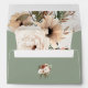 This gorgeous sage green wedding envelope features a charming rustic vibe, with a large boho bouquet of wildflowers in tones of olive green, browns, blush and cream. There is also a small bouquet with the same flowers on the back of the envelope. This pretty envelope would be suitable for any occasion, but especially ideal for a country wedding or any stylish, bohemian celebration.