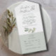 Simple yet elegant is this sage green watercolor eucalyptus All-in-One wedding invitation. Customize with your own information.