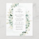 Rustic wedding invitation features watercolor eucalyptus botanical greenery frame and modern chic script and font, elegant and romantic, great for modern rustic wedding, botanical garden wedding and boho country wedding.