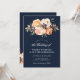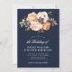 Rustic script fall floral navy blue wedding invitation