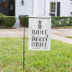 Welcome visitors and guests to your house with this cute and cheerful garden flag featuring the phrase "home sweet home" in dark grey lettering on a rustic white shiplap wood plank background accented with pineapple and rope illustrations. Personalize with your family name and/or year established beneath.