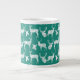 A bright, fun mug for winter for all your winter hot chocolate, coffee, even soup or chili! This jumbo specialty mug features rustic silhouette white deer, both bucks and does, on a background of teal!