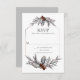 A rustic rsvp featuring a trendy silver gray geometric frame with silver and gray winter holly and pine with rusty brown berries. The back of the card is pale gray. Easily personalize with your own information.
