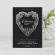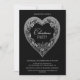 A stylish black and white wood botanical ornamented heart Christmas party invitation.