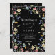 Rustic Simple Wildflower Black QR Code Wedding Invitation