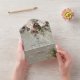 ALSO AVAILABLE WITH DETAILS, OR A QR CODE. Envelop your guests in the serene beauty of winter with our exquisite wedding invitation. A calming dusty sage backdrop creates a peaceful canvas for a stunning arrangement of fresh green pine sprigs, soft cream-colored blooms, and rustic brown pinecones. This natural masterpiece is adorned with a delicate snowfall of shimmering silver snowflakes, capturing the magic of a winter wonderland. The interplay of textures and colors evokes a sense of cozy warmth and festive cheer, setting the perfect tone for your winter celebration. Let this invitation be the first glimpse of the magical day you have planned. Created by Simply Farmhouse Press.