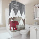 Rustic Snowy Mountain Red Black Buffalo Check Bear Shower Curtain