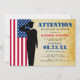 Rustic Farewell Party invitation to celebrate a soldier who is beginning his or her journey in the military. This salute invite is perfect for a going away, coming home or a retirement party. It features a vintage background, flag, a soldier saluting, and a modern invitation template that can easily be personalized.