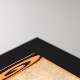 This wrapped canvas offers moody light shining on a motionless segment of simple globe and pitcher shaped terracotta wind chimes that are set in a spiraled effect. This photo is framed by a thin orange line with a tribal-like digital art design along the top and bottom and a black border. The image was altered with photo editing software for a distressed effect. Be sure to check under Framing Options/b> where you can select from two other canvas thicknesses, a number of panel options and sepia or black and white effects.