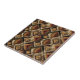 Warm geometric stripe pattern ceramic tile featuring tribal-inspired diamonds, zigzags, and textured vertical bands in earthy brown, terracotta, tan, beige, and charcoal tones. A cozy boho design ideal for southwestern décor lovers, rustic style fans, and anyone drawn to earthy, handcrafted aesthetics.