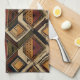 Warm geometric stripe pattern kitchen towel featuring tribal-inspired diamonds, zigzags, and textured vertical bands in earthy brown, terracotta, tan, beige, and charcoal tones. A cozy boho design ideal for southwestern décor lovers, rustic style fans, and anyone drawn to earthy, handcrafted aesthetics.