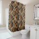 Warm geometric stripe pattern shower curtain featuring tribal-inspired diamonds, zigzags, and textured vertical bands in earthy brown, terracotta, tan, beige, and charcoal tones. A cozy boho design ideal for southwestern décor lovers, rustic style fans, and anyone drawn to earthy, handcrafted aesthetics.
